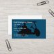 Simple business card for a golf industry business designed with graphic image of a golf cart printed behind your information used for a golf course, golf lessons, golf cart sales, service, and repairs.