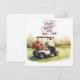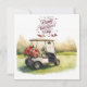 Golf Cart with red roses on green grass Valentine Holiday Card