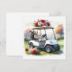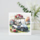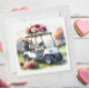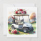 Golf Cart with red roses on green grass Valentine Holiday Card