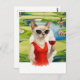 Golf Cat is drinking wine in Golf Course Postcard