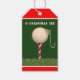 Creative golf holiday gift tags featuring golf ornament ball on tee and funny quote. Add name to easily personalise for your favourite golfer.