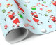 Unique golf themed holiday gift wrap featuring Santa golfer surrounded by Christmas treats and snowflakes.
