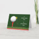 Funny golf Christmas card featuring tee, holiday golf ball ornament and the original "O, Christmas Tee!" line.