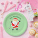 Creative golf themed Christmas holiday party or tournament plates featuring Santa Claus golfer and funny line.