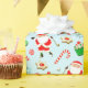 Creative golf holiday gift wrap and Christmas party decor featuring creative Santa Christmas cookies, candy and snowflakes.