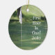 This ornament is perfect to celebrate a golf achievement in your life. It features a beautiful photograph of a golf course on the front and back. On the front it features the caption First Hole In One! You can change the text to read anything you wish.