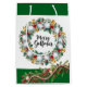 Wrap your holiday gifts in cheerful golfing style with this Golf Christmas Themed with Wreath medium gift bag! Featuring a festive watercolor wreath made of golf balls, tees, holly, and bows, this bright modern design perfectly blends Christmas charm with golf spirit. A smiling Santa golfer in his red polo and Santa hat completes the look, bringing seasonal joy to every golf lover’s gift. Perfect for holiday presents, golf tournaments, or Christmas-in-July celebrations.
