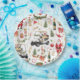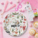 These Golf Christmas Paper Plates feature Santa Claus golfing on a festive course, surrounded by bright holiday decorations, gifts, and a cheerful red golf flag.