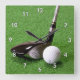 Golf Club and Golf Ball on the Green Square Wall Clock