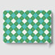 A retirement party guestbook for a golf-themed celebration featuring a bird's eye view of a gold course with green grass, bunkers, and water. The back features a matching argyle pattern in green, blue, and white.