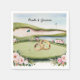 Add a unique touch to your wedding celebration with this golf-themed wedding napkin featuring a beautiful golf course with wedding rings on the putting green. Personalise it with the bride and groom’s names for a special keepsake. Perfect for golf course weddings, engagement parties, bridal showers, or anniversary celebrations, this elegant napkin blends romance with a love for the game.