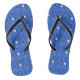 Bright blue flip flops with a pattern designed for keen golfers, featuring crossed golf clubs and golf balls.
