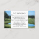 Gift certificate with a golf theme featuring an image of a golf course with a ball. The front image of a golf ball can be dragged or deleted if you like and you can replace the image of the golf course with your own photo (optional). Great for a golf resort or club or a teacher in golf. You can also use this card as a regular business card if you like. If you need more space on the back, you can also delete the image.