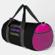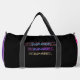 This sleek black duffle bag features a stylish and repetitive graphic proclaiming "GOLF GIRL" stacked three times. Each instance of the text showcases a vibrant gradient of colours, ranging from pink to purple to blue. This bag is perfect for golf enthusiasts, carrying essentials to the course or gym. Edit colour of the bag caps and body in the Design tool to your favored colours.