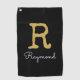 Golf Gold Monogram Initial and Name in black Golf Towel