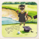Golf Graduation themed for golfer on putting green Square Paper Coaster