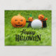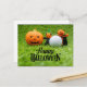 Golf Halloween with golf ball and ghost pumpkin Postcard