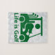 Golf jigsaw puzzle with ball dimples background, it has an image of a golfer in cart in green, you can change the puzzle to anything you like. dit