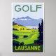 Vintage travel poster promoting Lausanne Switzerland as a Golfing destination.