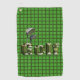 Golf Logo And Clubs On Green Checked Tartan, Golf Towel