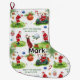Bring festive golf cheer to your holiday décor with this playful Christmas stocking! Featuring Santa Claus golfing on a lush green course, swinging his club, riding a golf cart, and surrounded by golf balls, golf bags, and cheerful Christmas decorations like ornaments, candy canes, and holly. The fun text “May the Course Be With You” adds a humourous golf-themed twist, making it perfect for holiday decorating or gifting to golf enthusiasts. Bright, modern watercolor style with vibrant holiday colours.