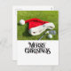 Golf Merry Christmas with Santa Hat on green Holiday Postcard
