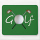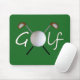Golf Mousepad. Green mousepad with criss crossed golf clubs with a white golf ball in the centre. Text and/or pictures can be added and colour of mouse pad can also be customised.