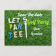 Golf Par tee party invitation with golf ball and tees are on green grass.