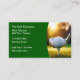 Business cards for a golf business designed with a cool graphic of a golf ball on a golf T closeup with beautiful morning light on the golf course and simple editable template you can customise online.