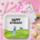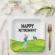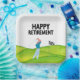 "Celebrate the next chapter in style with our 'Swinging into Retirement' golf-themed paper plates! Perfect for the golf enthusiast bidding farewell to the fairways, these plates feature a charming golfing motif that adds a touch of whimsy to any retirement party. Whether you're hosting a small gathering or a grand affair, these plates are sure to delight guests and bring a smile to the retiree's face. Made of sturdy paper, they're ideal for serving up delicious snacks and treats as you tee off into retirement. Add a playful touch to your celebration and make memories that will last a lifetime with our golf-themed paper plates!"