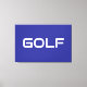 This sporty, athletic design features white modern GOLF text against a deep blue background. The text and colors in this design can be personalized.