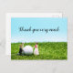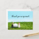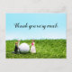 Golf thank you card wedding with bride and groom with golf ball and tee on green grass