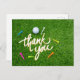 Golf Thank you with ball and colourful tee on green Postcard