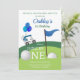 Celebrate your little ones milestone with this charming golf themed first birthday invitation. Featuring a playful golf cart, balloons, and course details, this design uses fun golf terminology to set the tone for a day of joy. Perfect for golf-loving families, it combines sporty style with festive flair to make your childs party unforgettable. Customise with your event details and impress guests with a unique, hole-in-one celebration.