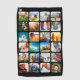 Personalised 24 photo template golf towel with rounded corners on black background. Perfect for a golfer in the family.