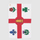 The flag of Montreal prominently displays a bold red cross dividing a white field into four quarters, each adorned with a floral emblem representing the city’s founding communities: the fleur-de-lis for the French, the rose for the English, the thistle for the Scots, and the shamrock for the Irish. At the centre sits a vivid red maple leaf symbolising Canadian unity and multicultural pride. This meaningful design adds a unique and eye-catching flair to the towel, making it a standout addition to your golf gear.