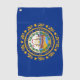 The towel proudly showcases the iconic flag of New Hampshire, with its distinctive blue field adorned with the state seal featuring the frigate Raleigh, a sheaf of arrows, and a granite boulder, symbolising the state's history, independence, and rugged natural beauty. Whether you're on the golf course or simply want to express your pride for New Hampshire, this golf towel adds a touch of elegance and regional pride to your game.