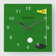 This golf wall clock is the perfect gift for your golfer friend or yourself. The design features a golf green with the 18th hole and the ball is about to roll in at 5 o'clock! Copyright Kathy Henis