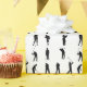 This wrapping paper features a repeated vector image of golfers in various poses. The background colour can be customised if desired.