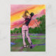 Watercolor painting of Golfer swinging his club with a red warm sunrise.