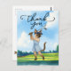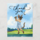 A charming postcard featuring a golfer cat swinging on the green with a heartfelt "Thank You" written across the sky. Perfect for expressing gratitude with a fun and unique golfing twist!
