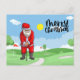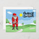Golfer Christmas with Golf Flag and Santa Claus Holiday Postcard