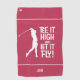 Cute golfer quote "Tee It High & Let it Fly!" design features a fun mid-century font in white on a solid magenta red background combined with a female golfer silhouette also in white. Customise with monogrammed initials, name or short text with the simple-to-use template. The colour of the quote, golfer and towel is customisable. The font colour or style of the initials may also be customised. The typography and golfer are vector graphic designs and can be easily transferred to other Zazzle products large, or small, and will retain clarity without pixelating. Message with custom colour requests of questions.