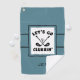 Fun golf design features "Let's Go Clubbin' " in the centre in white type arranged with two black golf clubs and a golf ball all on a white background framed in classic black. The background is turquoise green. The bottom portion contains a modern template for custom monogram, name or text of choice. Message below this listing or email beachpause@gmail.com with custom colour requests.