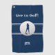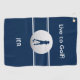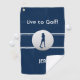 Live to Golf! Golfer Sentiment Quote Added to preppy blue & white design with realistic golf ball image and female putter silhouette. Colour of background, fonts AND GOLFER are easily changed in the design tool section. Customise with name or initials at bottom of towel. Be sure to check out our other design options! Email me at beachpausedesigns@gmail.com if you have questions about this or any of our designs!