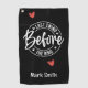Let the groom-to-be wipe away the sweat of his last swing before the ring in style with our "Last Swing Legacy" bachelor party golf towel! Crafted with absorbent and durable material, this golf towel is essential for keeping cool and dry on the course during his celebratory outing. Featuring a sleek design with the words "Last Swing Legacy" and a dynamic illustration of a golfer in action, this towel adds a touch of sporty sophistication to the bachelor party festivities. Whether it's hanging from his golf bag or draped over his shoulder, this towel is a practical and stylish accessory for the groom's final golf fling as a single man.