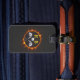 This stylish personalised luggage tag is for golfers and has a monogram on one side and the name, phone number and email address on the other side. These can all be customised with your own information. The modern design is a golf ball and golf clubs with initials surrounded by an orange and yellow fire ring on black. This makes an especially perfect gift for the avid golfer who is also a traveller so they can use this custom tag on their luggage.