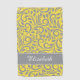 Design features an abstract floral pattern in trendy ultimate grey on an illuminating yellow background. A grey band has two small white accent stripes at the border and custom monogrammed name (or custom text) in white. Customise colours or keep as created. The colour of the background and fonts are easily changed in design tool section. Email me at beachpausedesigns@gmail.com if you have questions about this or any of our designs!