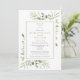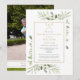 An elegant celebration of life remembrance invitation featuring greenery, golf clubs and ball, and a photo of the loved one on the reverse. Designed by Thisisnotme©