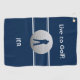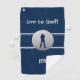Live to Golf! Golfer Sentiment Quote Added to preppy blue & white design with realistic golf ball image and putter silhouette. Colour of background and fonts are easily changed in the design tool section. Customise with name or initials at bottom of towel. Be sure to check out our other colour options! Email me at beachpausedesigns@gmail.com if you have questions about this or any of our designs!